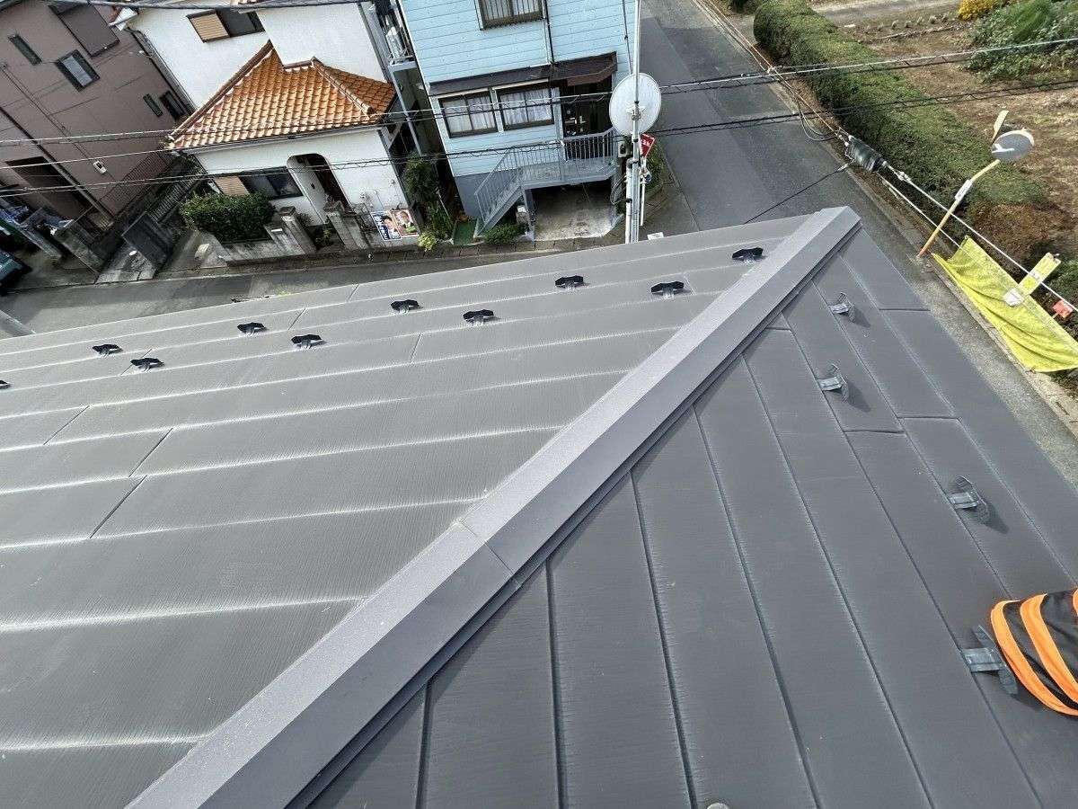 原因を特定するには屋根材を剥がす必要があり、被害箇所を一部交換しつつ、新しい屋根材にて再施工を実施しました。